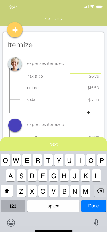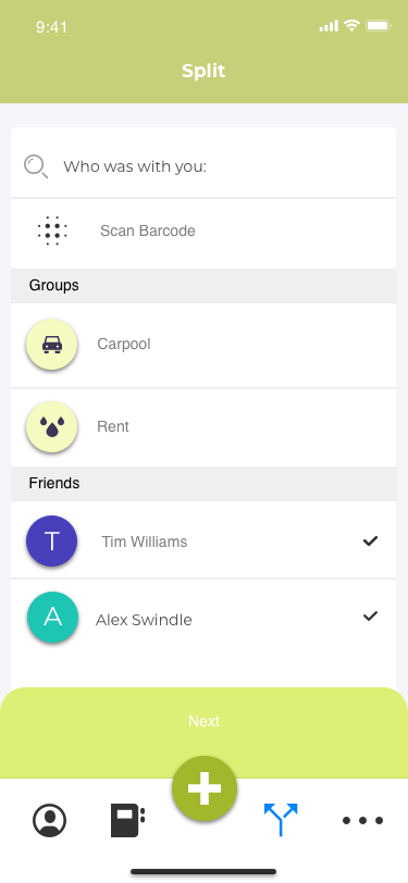 At this stage, you are able to select who you would like to split an expense with. You can either split it evenly or itemize so users are paying only for what they purchased.